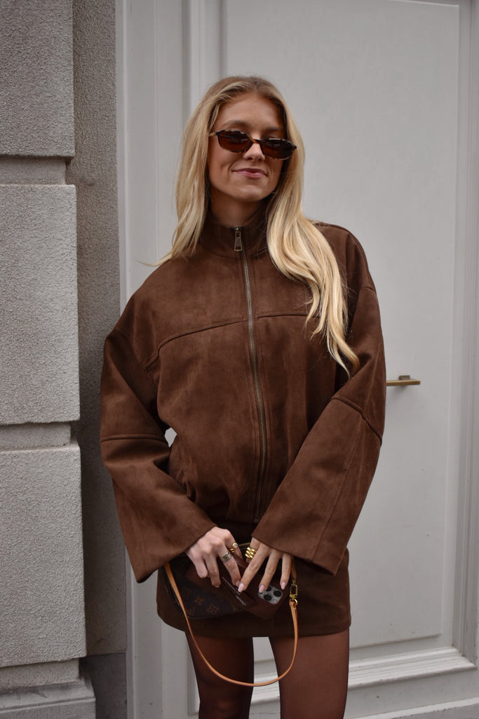 We are obsessed! Onze suede look muse jacket is een echte beauty die jij niet wilt missen! Het jasje is gemaakt van een stof met suède look en een prachtige lichte oversized fit. Draag het jasje in combinatie met het bijpassende rokje of style hem samen met jouw favorite basic pantalon of jeans. The choice is all yours babes!