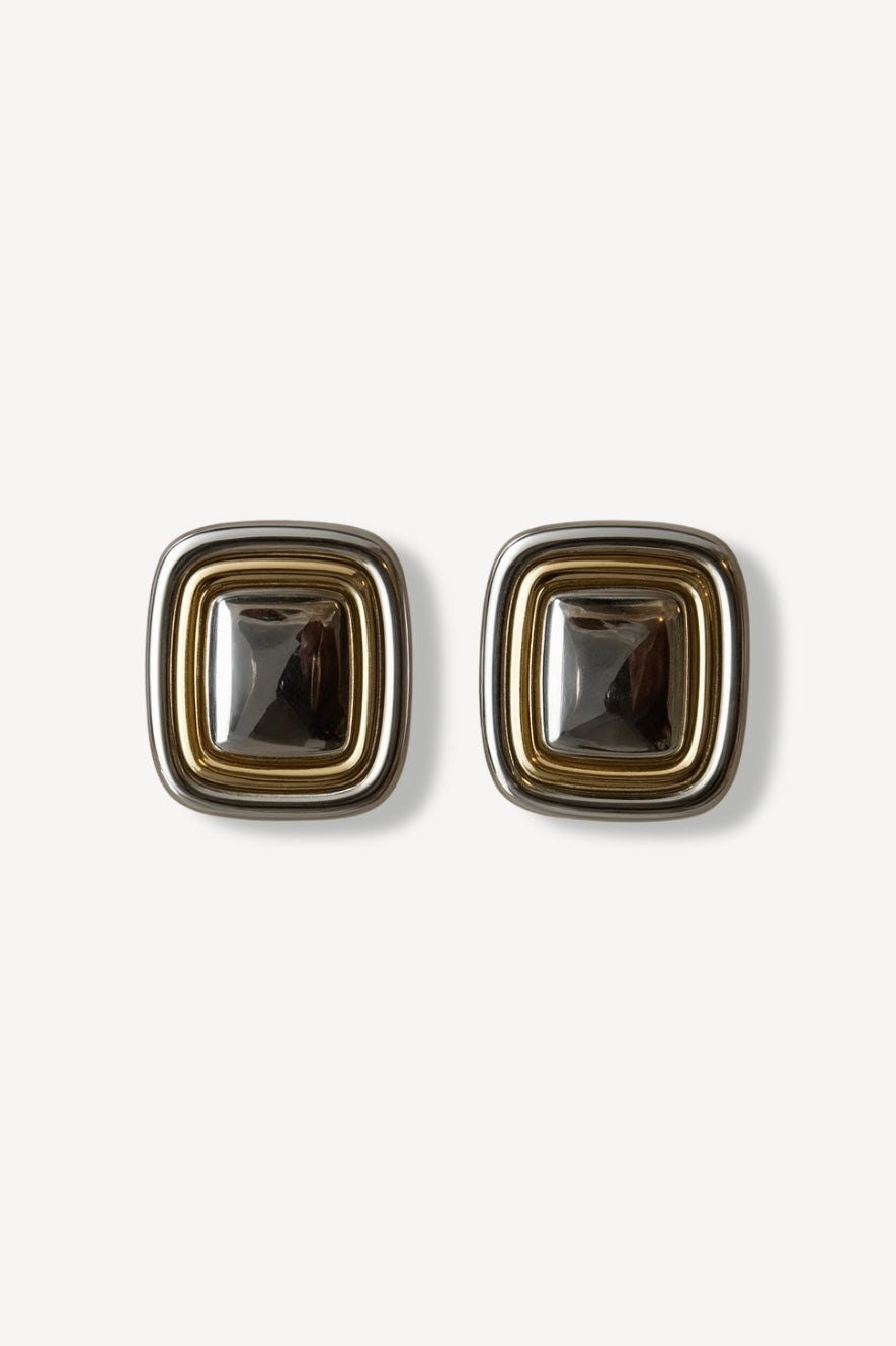 Mixed metal oorbellen vierkant - Goud/zilver
