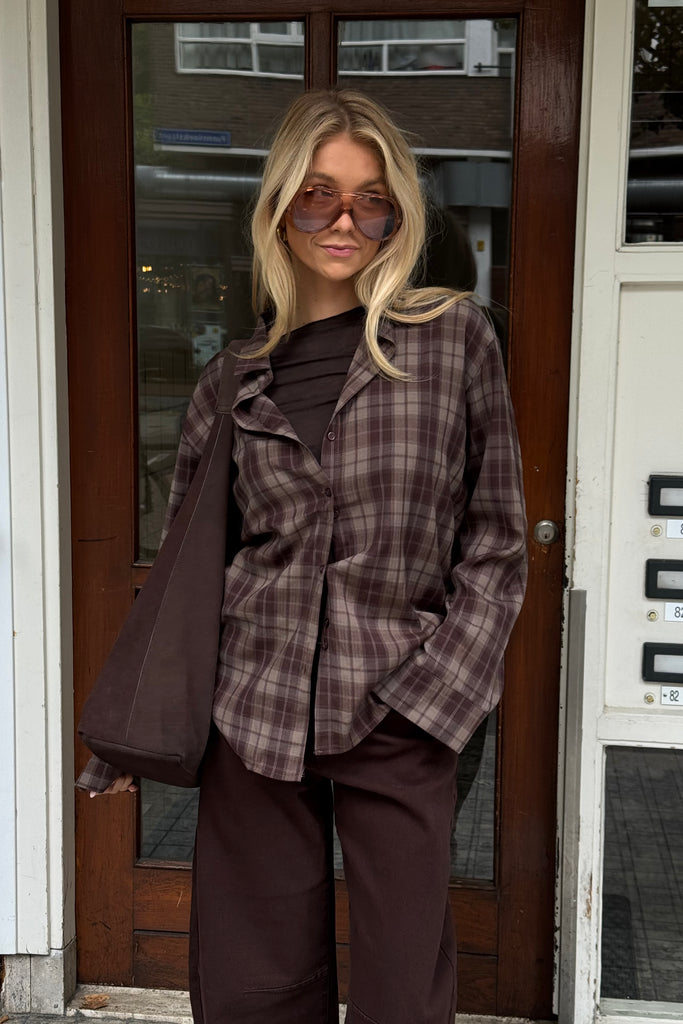 Geruite fall blouse - Bruin