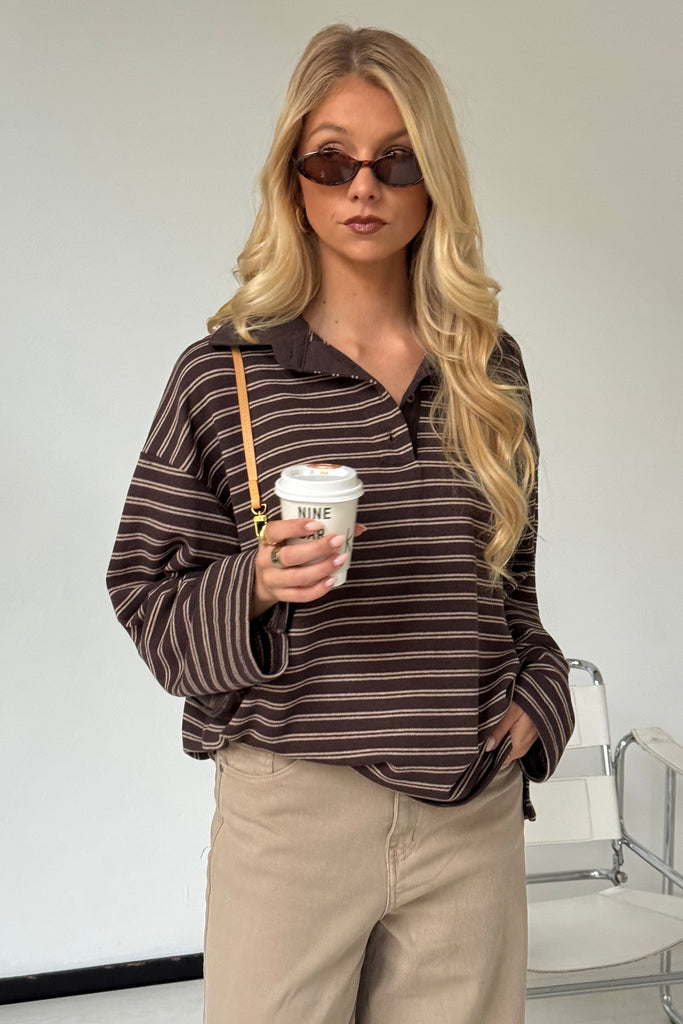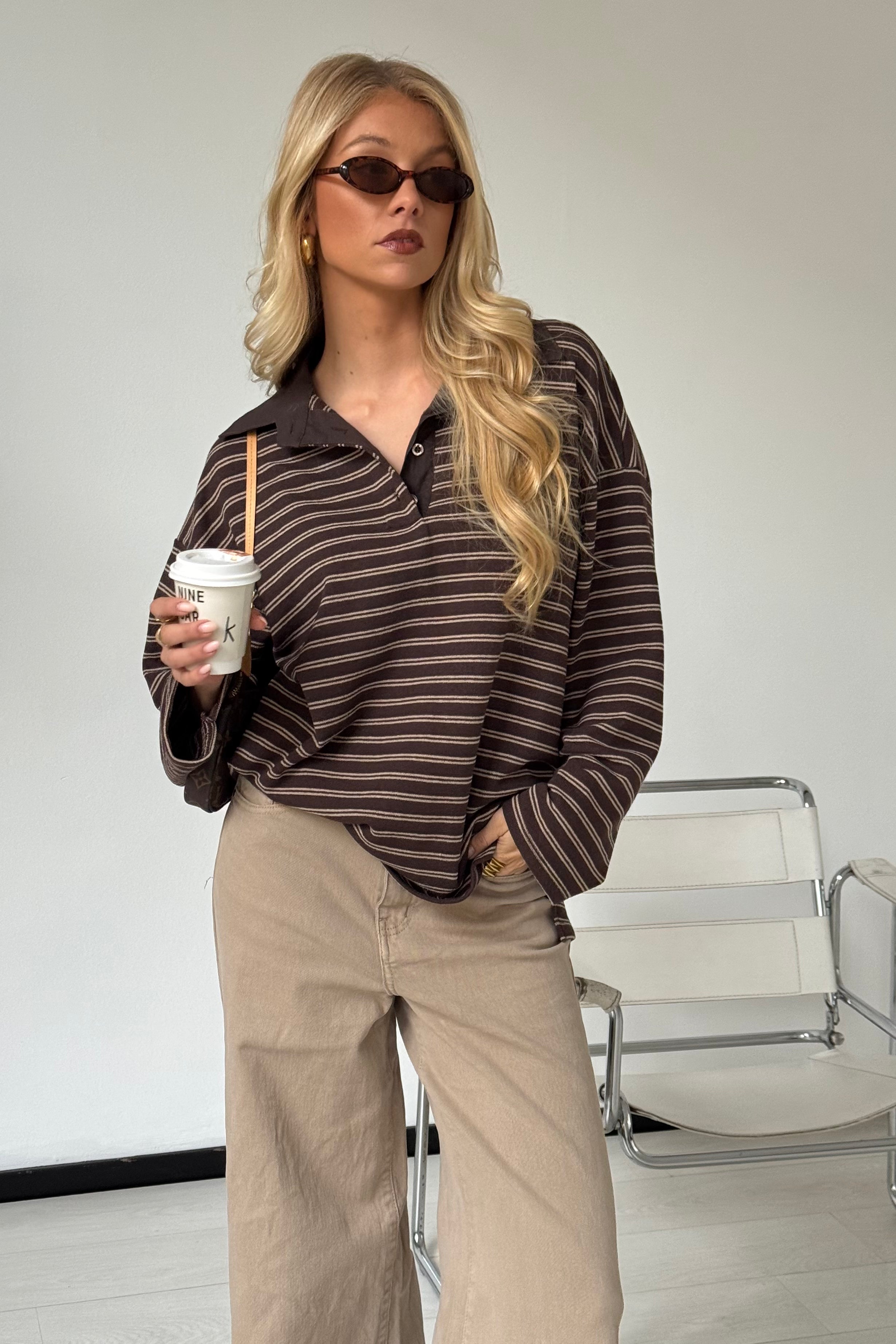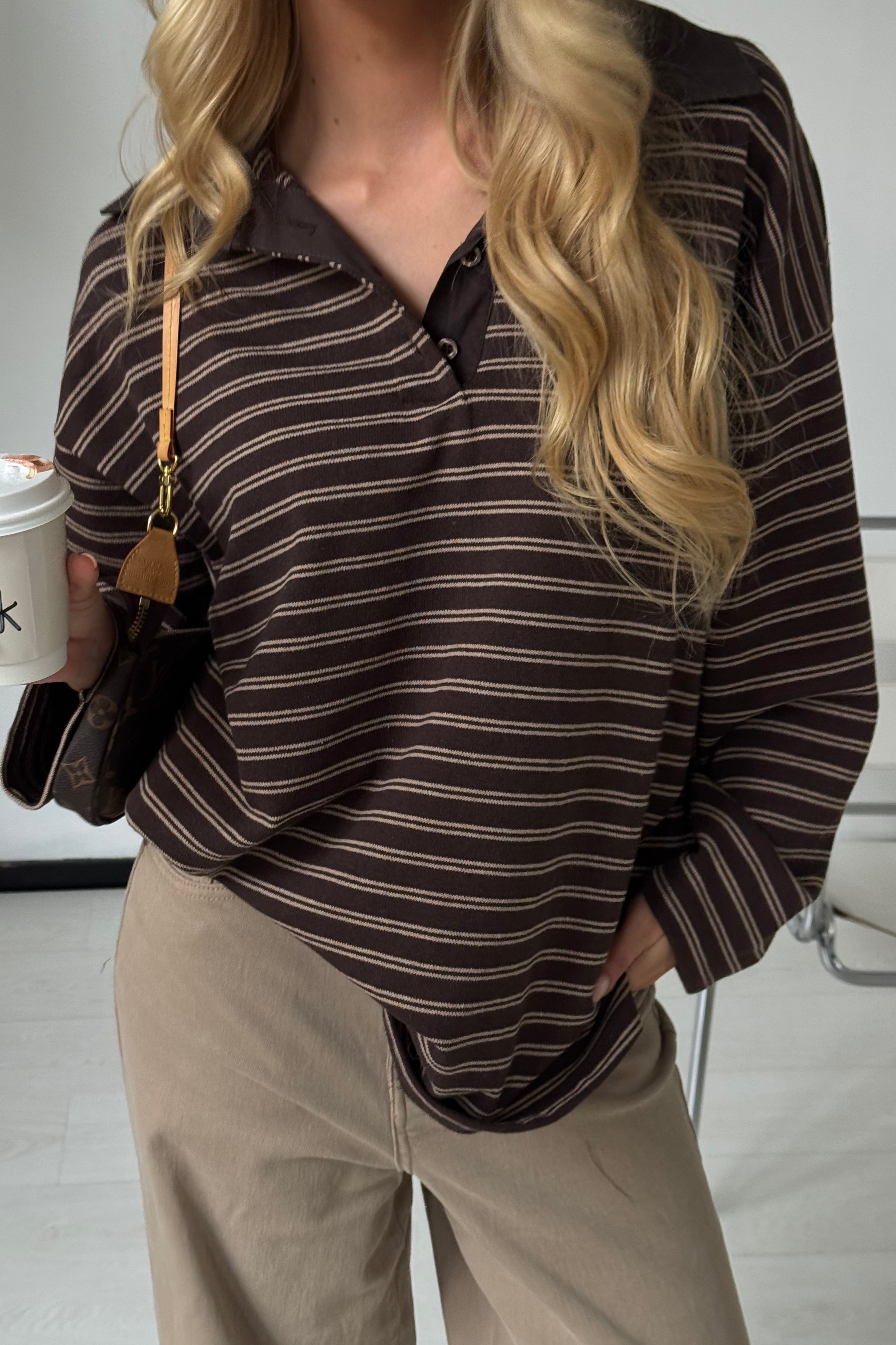 New in! Wij zijn helemaal obsessed met onze nieuwe polo top, girls! Dit item is de perfecte toevoeging voor jouw fall wardrobe! De all-over strepenprint in combinatie met de fall kleuren en elegante kraagje maakt jou binnen no-time ready for the day! Draag de polo mega leuk met jouw favoriete jeans en sneakers of met een skort en boots voor een stoere touch. We love it!