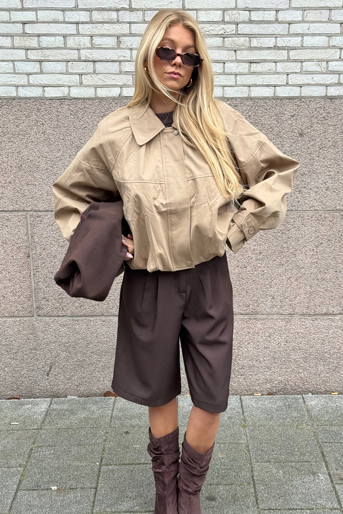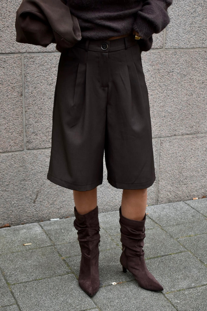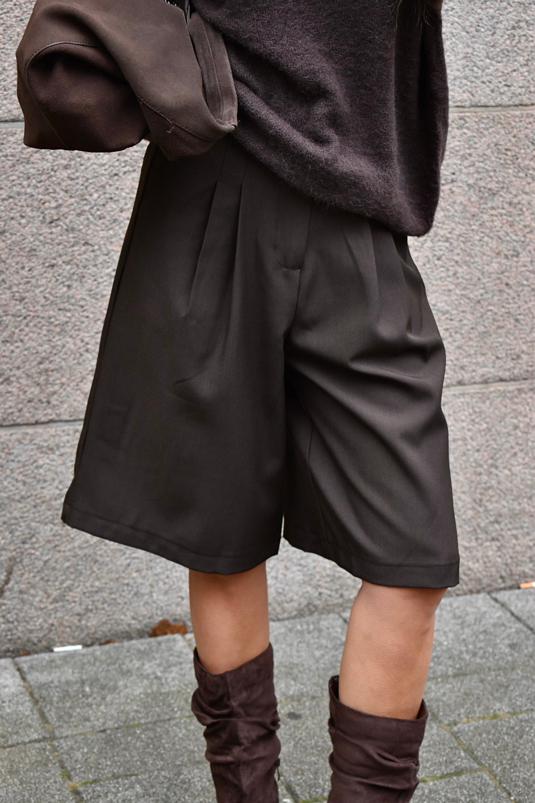Trend alert! Deze pantalon bermuda is toch geweldig? Je kan de pantalon op heel veel manieren combineren. Draag 'm met een van onze oversized basis truien en onze autumn hoge boots! De pantalon heeft een prachtige stof en een wide leg model. You can't go wrong with this beauty girls!