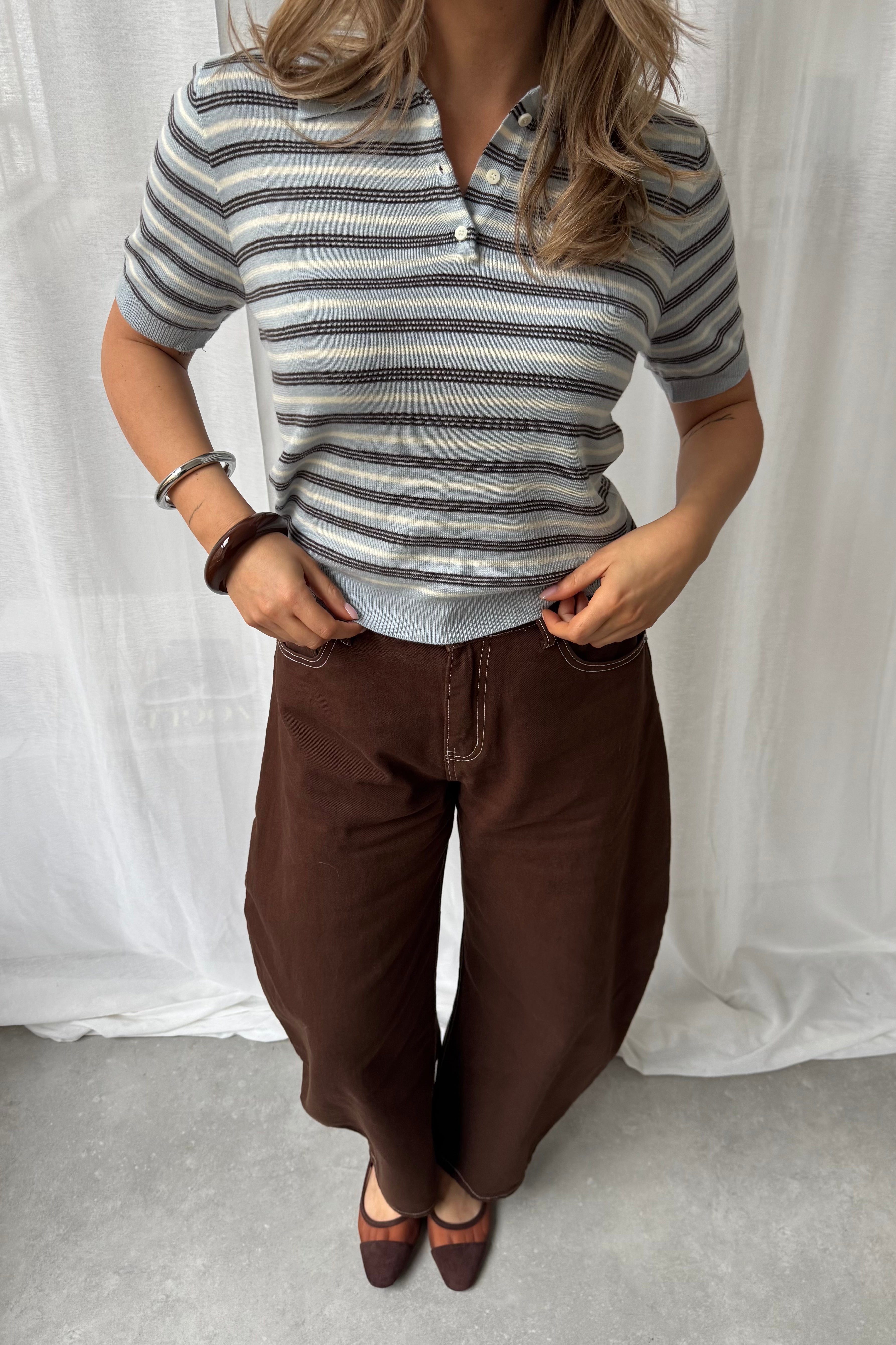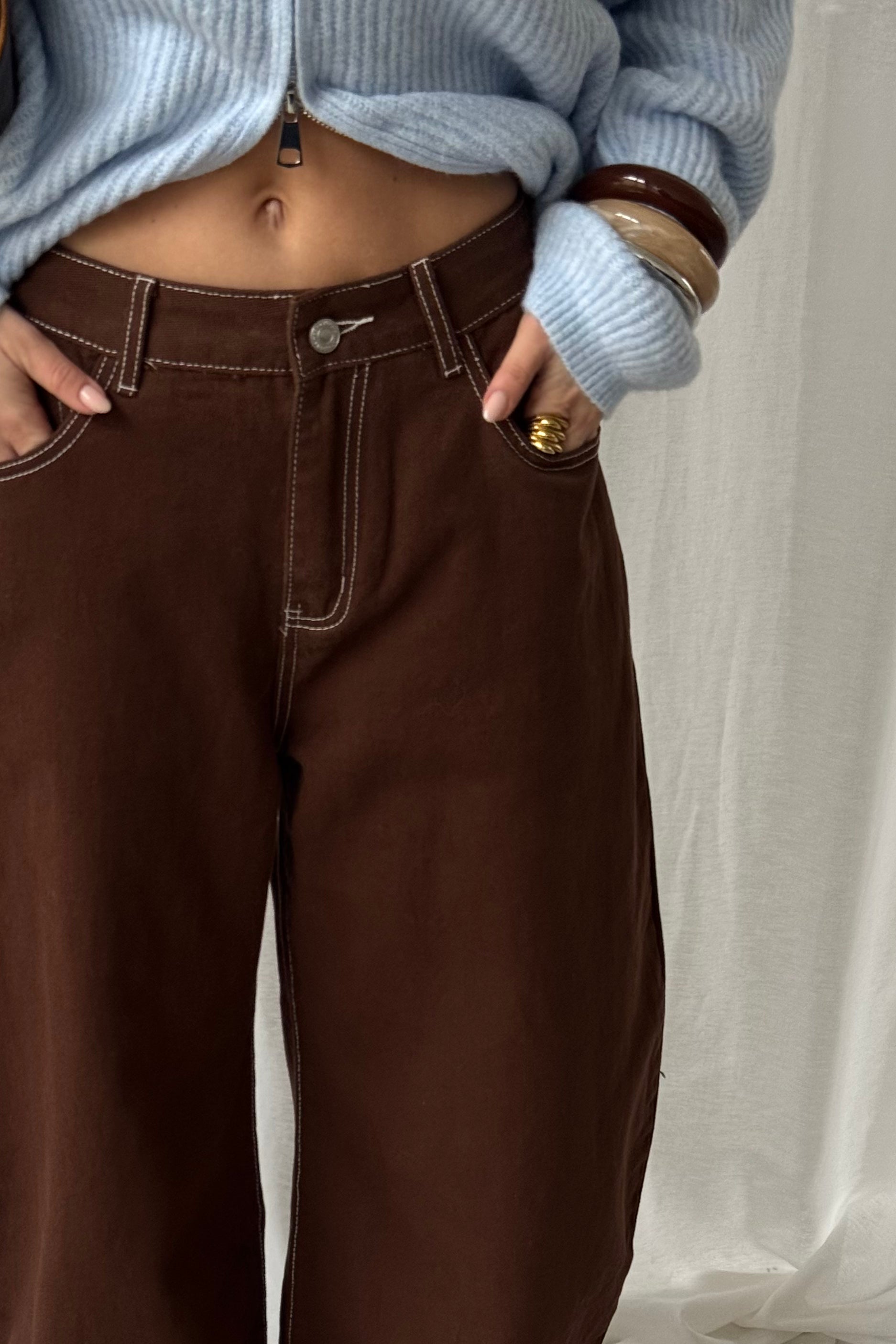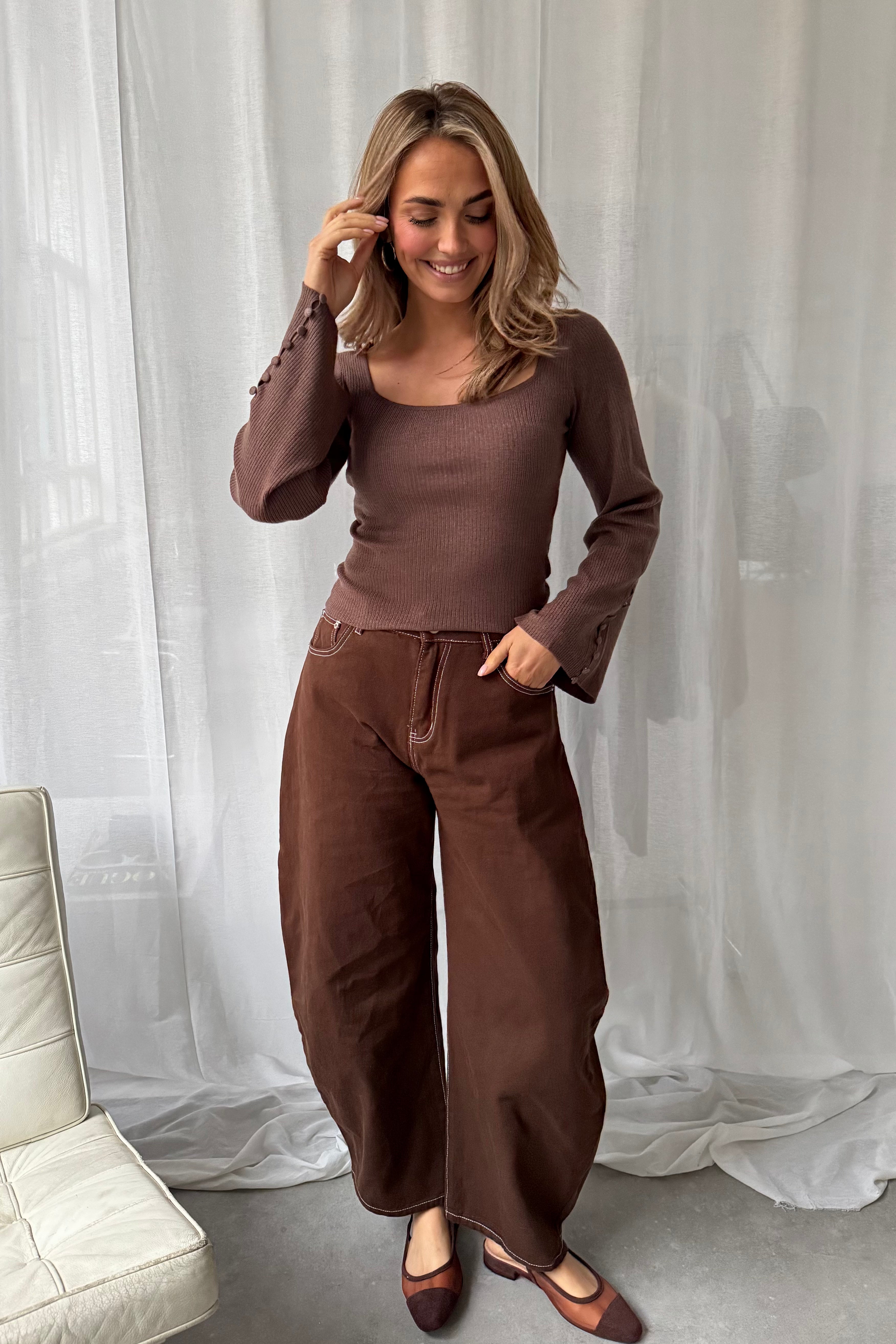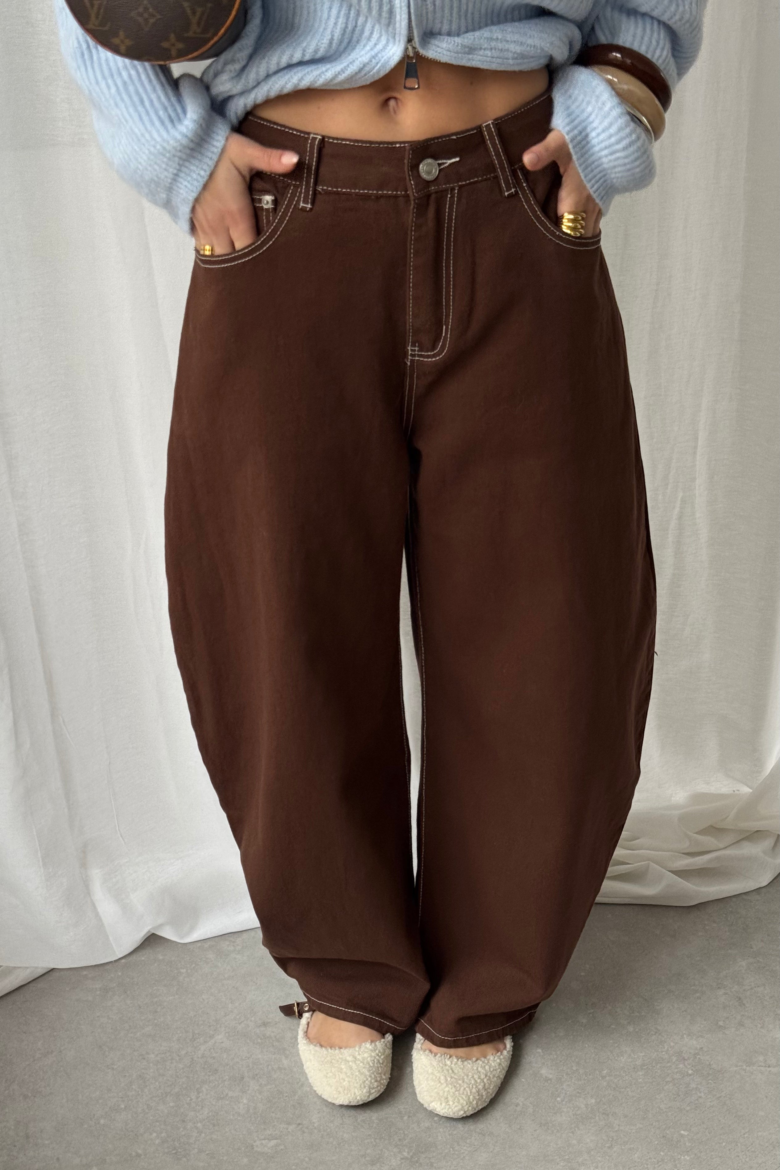 Baggy balloon jeans stiksels - Bruin
